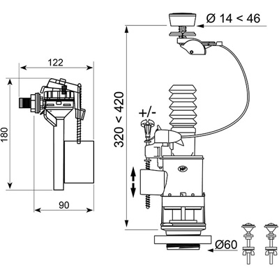 WIRQUIN - Mécanisme de wc MW² double chasse à câble + robinet flotteur NF