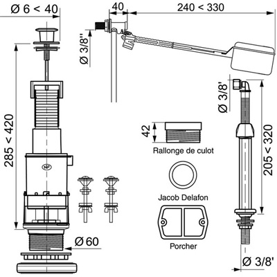 WIRQUIN - Pack mécanisme de wc MXS111 simple chasse + robinet flotteur F12