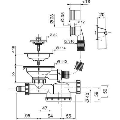 WIRQUIN - Kit complet pour évier 1 bac avec prise machine à laver - blanc - ø90mm + trop plein