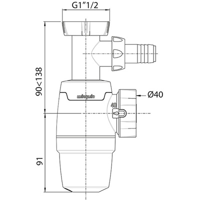 WIRQUIN - Siphon NEO pour évier avec prise machine à laver - blanc - ø40 mm NF