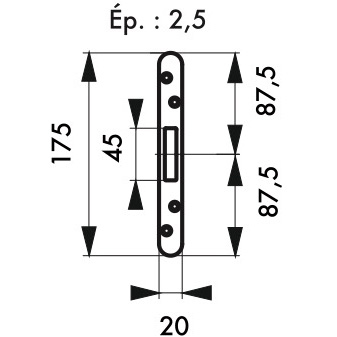 THIRARD - Lot de 3 gâches plates 20 mm à bouts ronds pour pênes rectangulaires