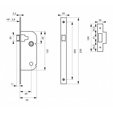 THIRARD - Serrure à encastrer bec de canne - bronze
