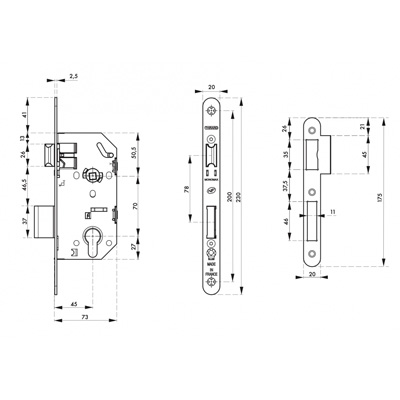 THIRARD - Serrure monomax à cylindre bouts ronds - tétière noire -gache c25