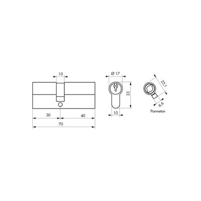 THIRARD - Cylindre LP double entrée laiton 30 x 40mm + 3 clés