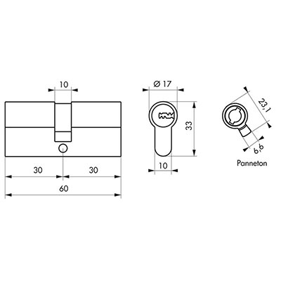 THIRARD - Cylindre TRAFIC 6 double entrée nickelé 35 x 35mm + 5 clés