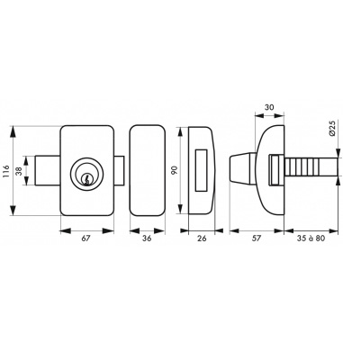 THIRARD - Verrou Universel double entrée ajustable HG5 - bronze + 3 clés